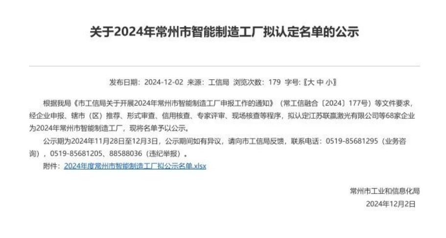 冬迎碩果,佳績連連!近日,常州市工業(yè)和信息化局發(fā)布2024常州市智能制造工廠擬認(rèn)定名單,常州華威電子榮登榜單!